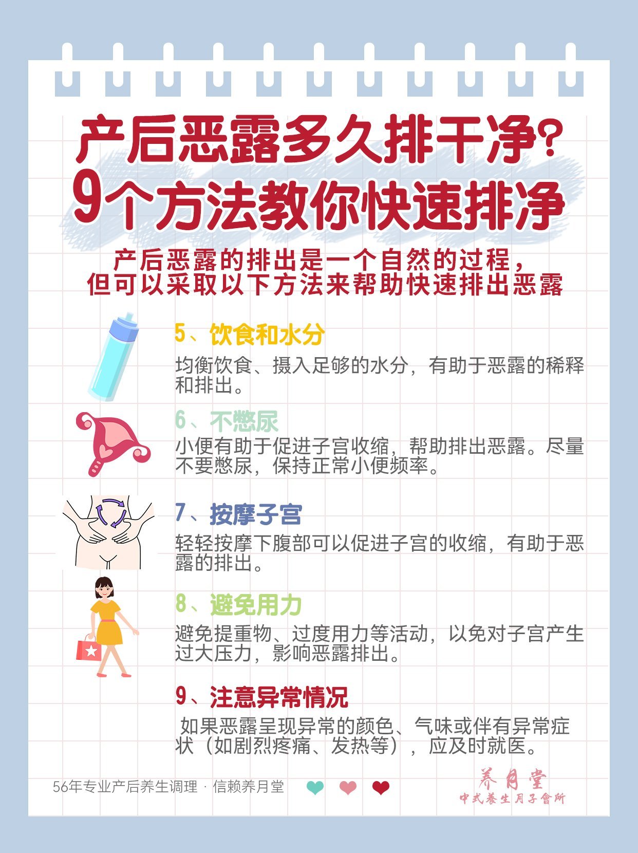 3、產(chǎn)后護理:良好的產(chǎn)后護理有助于惡露更快地排出。