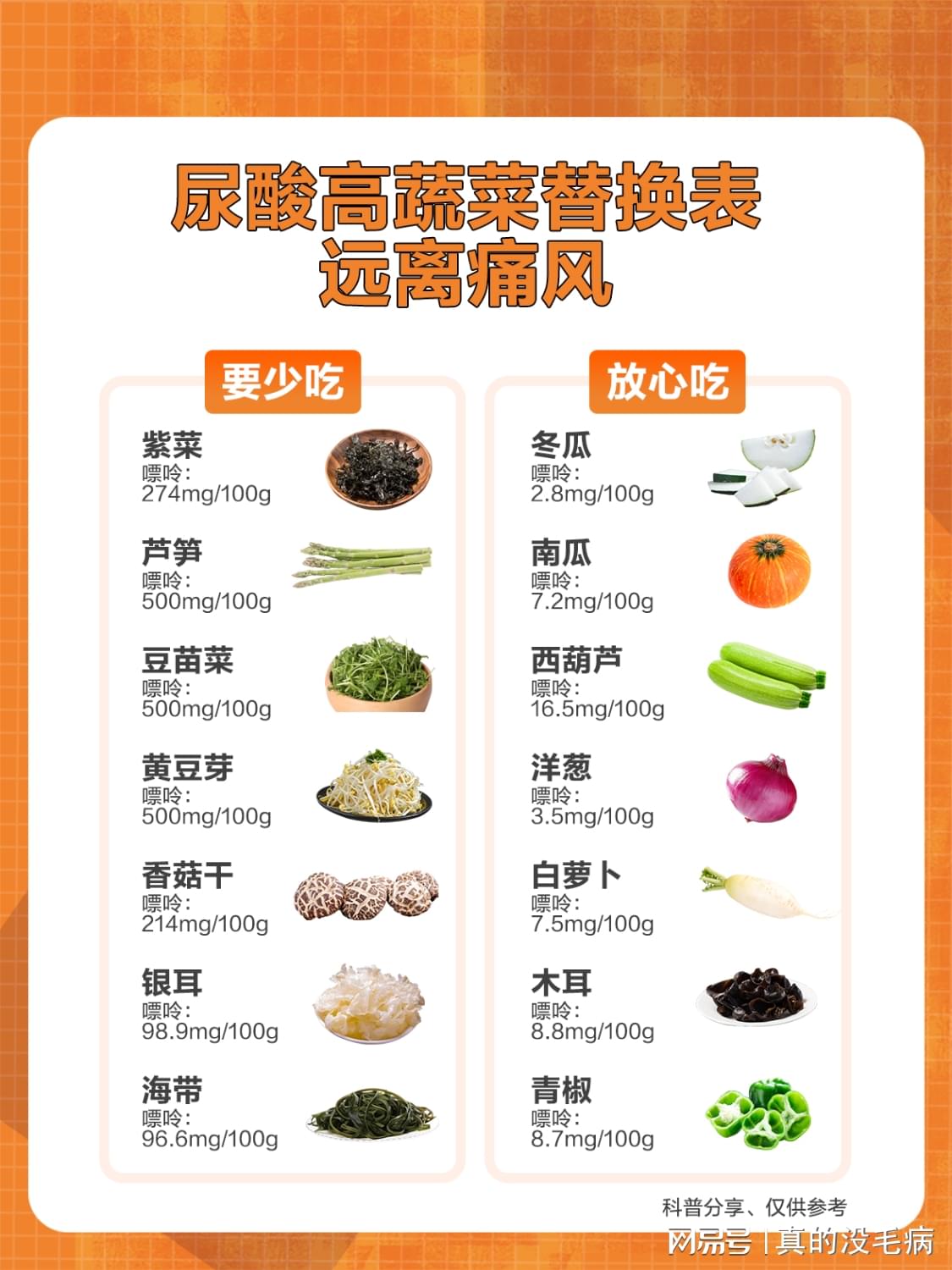1、多吃低嘌呤食物