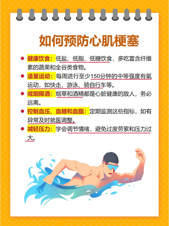 預(yù)防心肌梗塞的復(fù)發(fā)同樣重要,患者除了接受最佳治療方法外,還應(yīng)注意以下幾點: