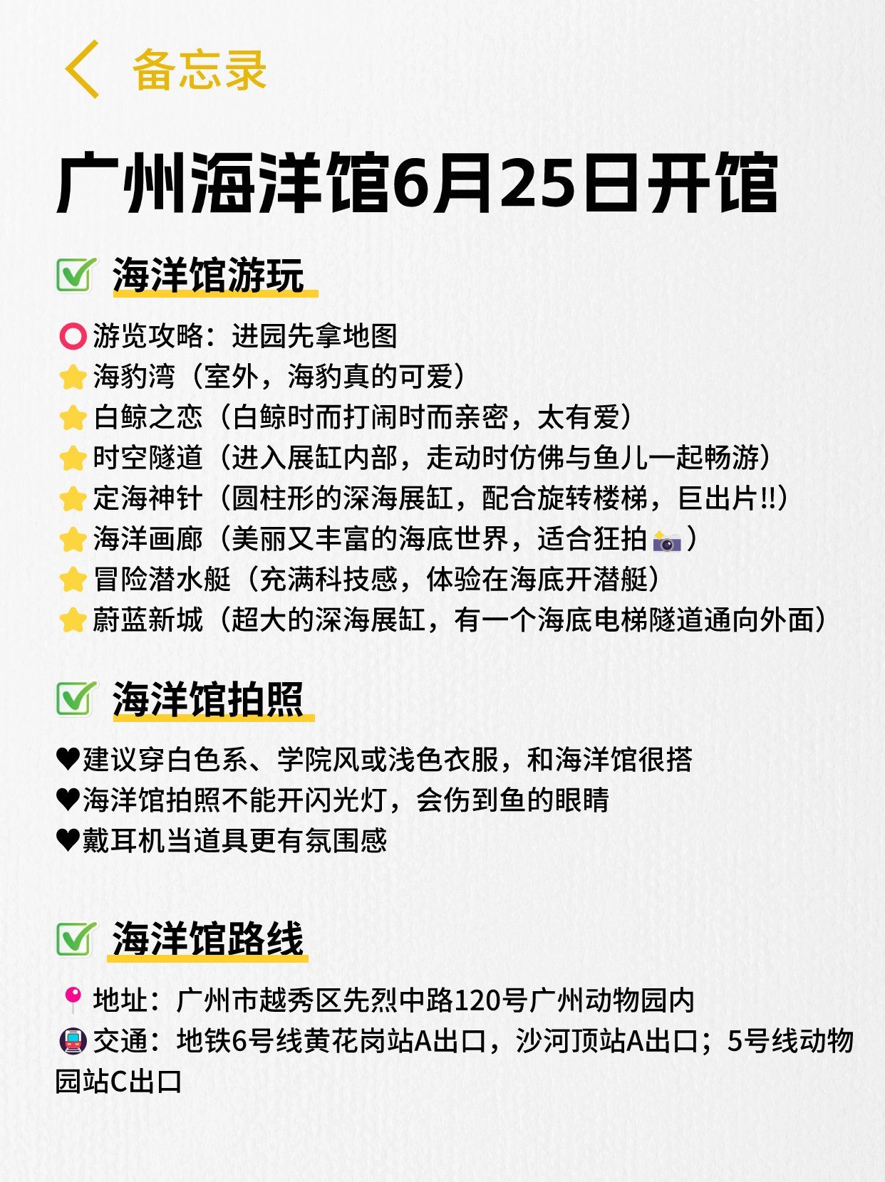 2、根據(jù)游玩時間選擇:如果您時間充裕,可以選擇較大的海洋館,如廣州長隆海洋王國;如果您時間較緊,可以選擇規(guī)模較小的海洋館,如廣州海洋館。